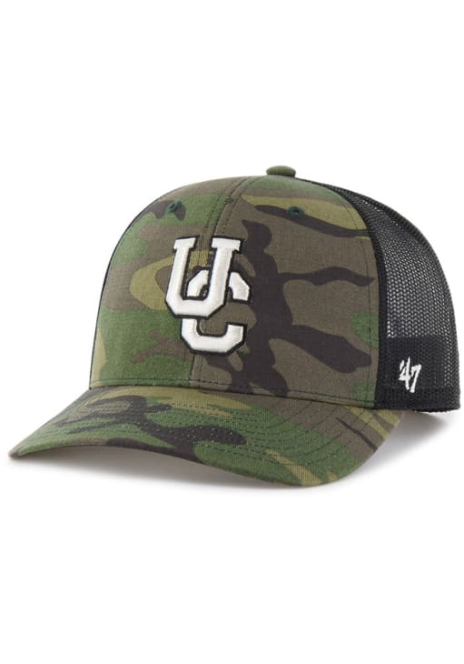 Product Details Product Details 47 Camo TruckerFront embroidered team logoAll over camo printMeshbackSnap ClosureCOTTON/POLY BLENDCurved BillLow CrownLightly StructuredWipe clean with cloth or cleaning kitImported Officially Licensed This Green Bearcats Adjustable Hat features a team logo on front.