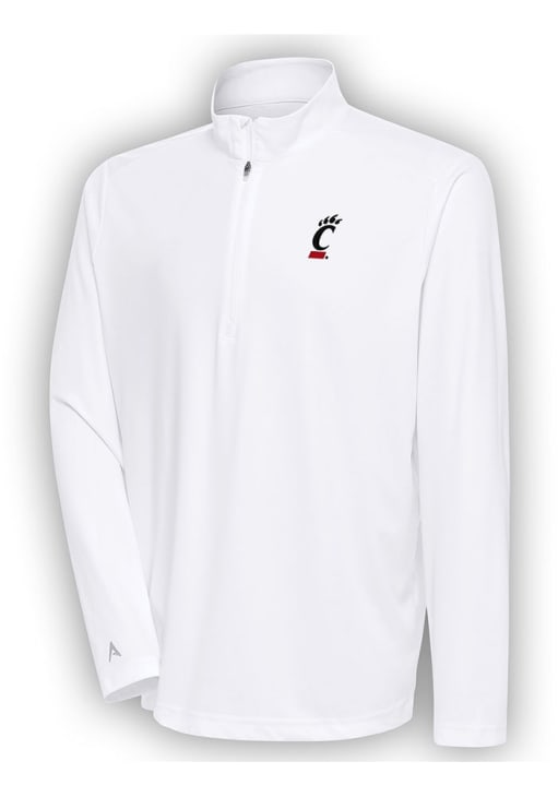 Embrace the warmth and showcase your Bearcats pride with our Cincinnati Bearcats Long Sleeve Qtr Zip Pullover. This Mens White Tribute Long Sleeve Pullover offers a open cuff and bottom hem for the perfect combination of comfort and style. Elevate your everyday look with this must-have Cincinnati Bearcats Long Sleeve Qtr Zip Pullover.