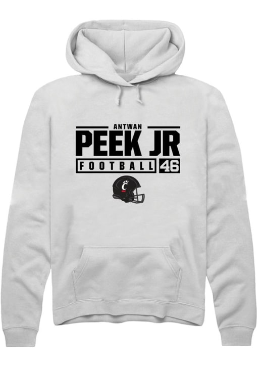 Antwan Peek Jr. Rally Mens White Cincinnati Bearcats NIL Stacked Box Hooded Sweatshirt
