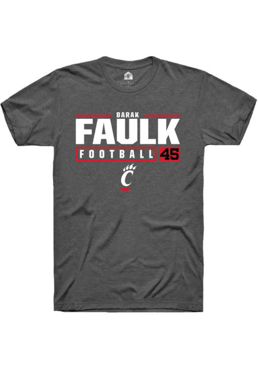 Barak Faulk Dark Grey Cincinnati Bearcats NIL Stacked Box Short Sleeve T Shirt