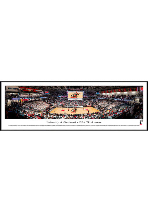 This Cincinnati Bearcats Basketball Standard Framed Posters is a great way to show your Bearcats pride in your home. This Framed Posters features a panoramic image of Fifth Third Arena. This image captures a much anticipated matchup between the Cincinnati Bearcats and the Ohio State Buckeyes. Show your team spirit with a Blakeway game day print. This 40.25 x 13.5 Aluminum framed panoramic will be perfect for your office, fan cave, or home.