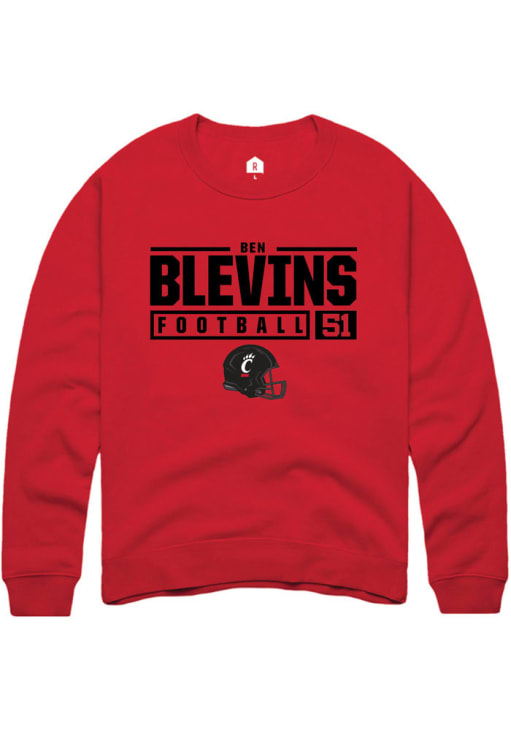 Ben Blevins Rally Mens Red Cincinnati Bearcats NIL Stacked Box Crew Sweatshirt