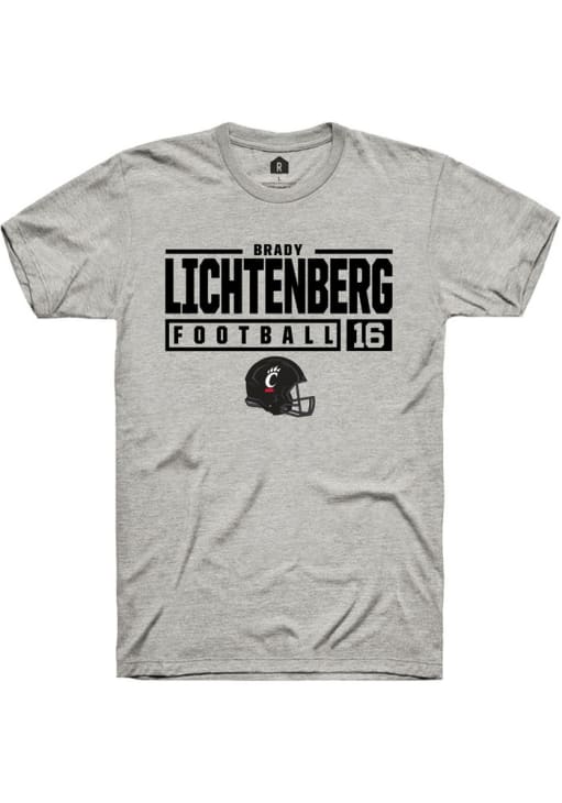 Brady Lichtenberg Ash Cincinnati Bearcats NIL Stacked Box Short Sleeve T Shirt