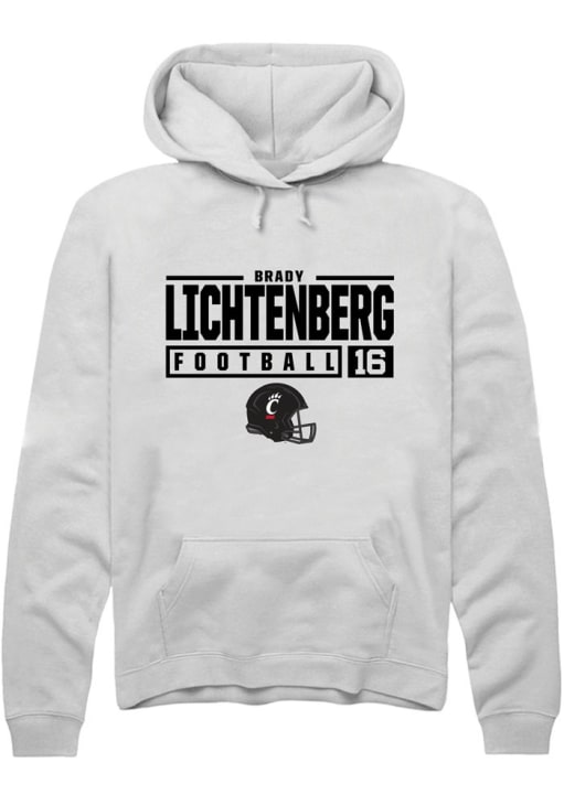 Brady Lichtenberg Rally Mens White Cincinnati Bearcats NIL Stacked Box Hooded Sweatshirt