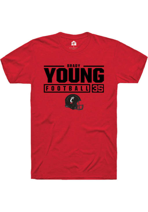 Brady Young Red Cincinnati Bearcats NIL Stacked Box Short Sleeve T Shirt