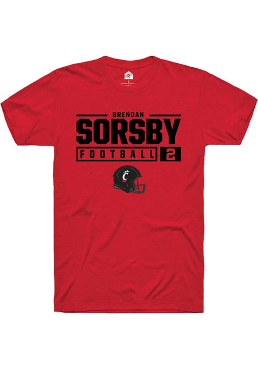 Brendan Sorsby Red Cincinnati Bearcats NIL Stacked Box Short Sleeve T Shirt