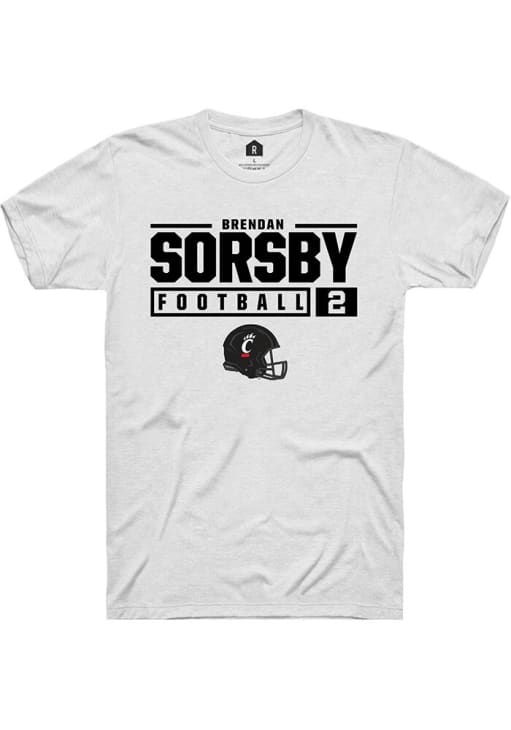 Brendan Sorsby White Cincinnati Bearcats NIL Stacked Box Short Sleeve T Shirt