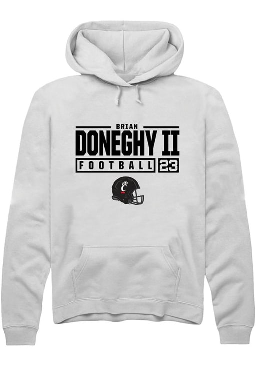 Brian Doneghy II Rally Mens White Cincinnati Bearcats NIL Stacked Box Hooded Sweatshirt