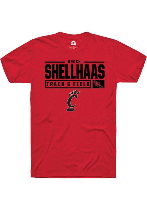Brock Shellhaas Red Cincinnati Bearcats NIL Stacked Box Short Sleeve T Shirt