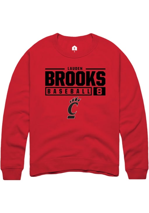 Lauden Brooks Rally Mens Red Cincinnati Bearcats NIL Stacked Box Crew Sweatshirt