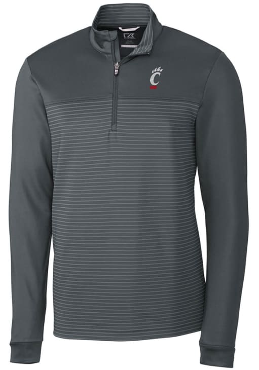 Embrace the warmth and showcase your Bearcats pride with our Cincinnati Bearcats Long Sleeve Qtr Zip Pullover. This Mens Grey Traverse Stripe Stretch Long Sleeve Pullover offers a high quality 2-ply DryTec matte finish polyester for the perfect combination of comfort and style. Elevate your everyday look with this must-have Cincinnati Bearcats Long Sleeve Qtr Zip Pullover.