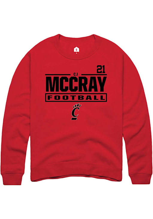 Support your Cincinnati Bearcats and favorite CJ McCray in this Cincinnati Bearcats Mens Red Football NIL Stacked Box Player Crew. This Crew Sweatshirt features a NIL graphic, and is sure to stand out in the stadium. Perfect to wear on game day or any day!