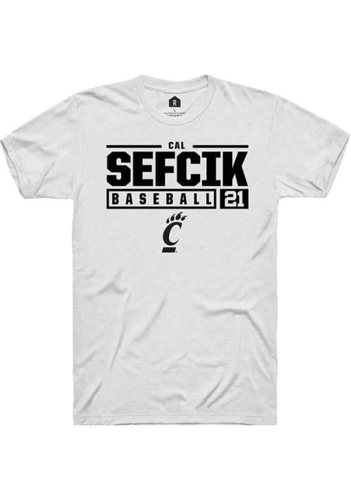 Cal Sefcik White Cincinnati Bearcats NIL Stacked Box Short Sleeve T Shirt