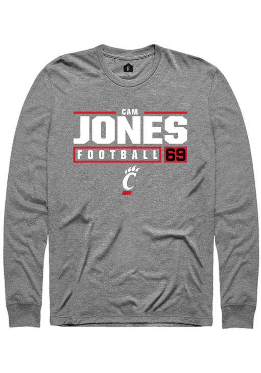 Cam Jones Rally Mens Graphite Cincinnati Bearcats NIL Stacked Box Tee