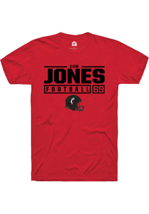 Cam Jones Red Cincinnati Bearcats NIL Stacked Box Short Sleeve T Shirt