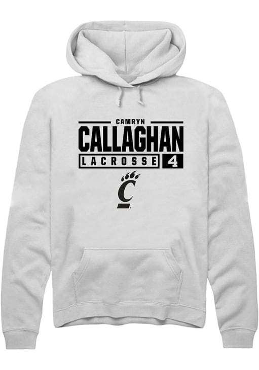 Camryn Callaghan Rally Mens White Cincinnati Bearcats NIL Stacked Box Hooded Sweatshirt