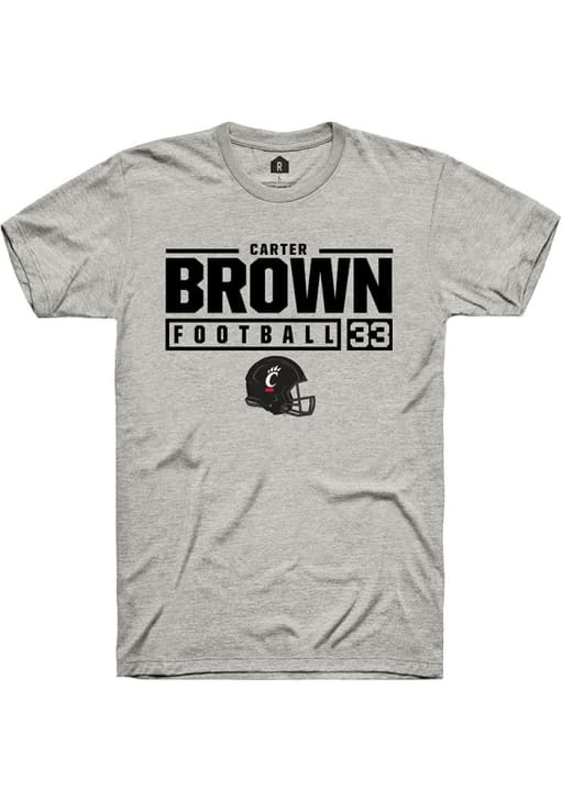 Carter Brown Ash Cincinnati Bearcats NIL Stacked Box Short Sleeve T Shirt