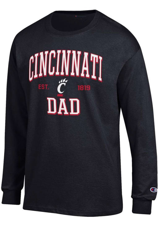 Show your Cincinnati Bearcats spirit in this Cincinnati Black T Shirt! This Cincinnati Est Date Dad Jersey Long Sleeve T Shirt makes a great layer for cooler nights cheering on the Bearcats. Featuring a printed team graphic on front chest, this Cincinnati Bearcats Long Sleeve Tee is an essential addition for every fan. Go Bearcats!!