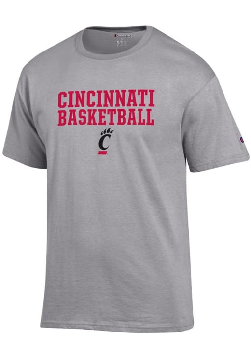 Display your team spirit with this remarkable Cincinnati Bearcats Champion Grey BASKETBALL Short Sleeve T Shirt! The Cincinnati Short Sleeve Tee showcases a screen print with school name, sport, and logo on center chest that truly sets it apart. Stand out from the crowd and proudly declare your allegiance to the Bearcats with this exceptional Grey Cincinnati T Shirt. Go Bearcats!!