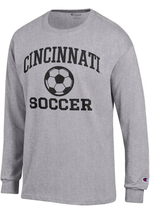 Show your Cincinnati Bearcats spirit in this Cincinnati Grey T Shirt! This Cincinnati Soccer Jersey Long Sleeve T Shirt makes a great layer for cooler nights cheering on the Bearcats. Featuring a printed team graphic on front chest, this Cincinnati Bearcats Long Sleeve Tee is an essential addition for every fan. Go Bearcats!!