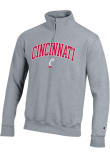 Embrace the warmth and showcase your Bearcats pride with our Cincinnati Bearcats Long Sleeve Qtr Zip Pullover. This Mens Grey Powerblend Long Sleeve Pullover offers a screen print of Cincinnati arched over mascot on center chest for the perfect combination of comfort and style. Elevate your everyday look with this must-have Cincinnati Bearcats Long Sleeve Qtr Zip Pullover.