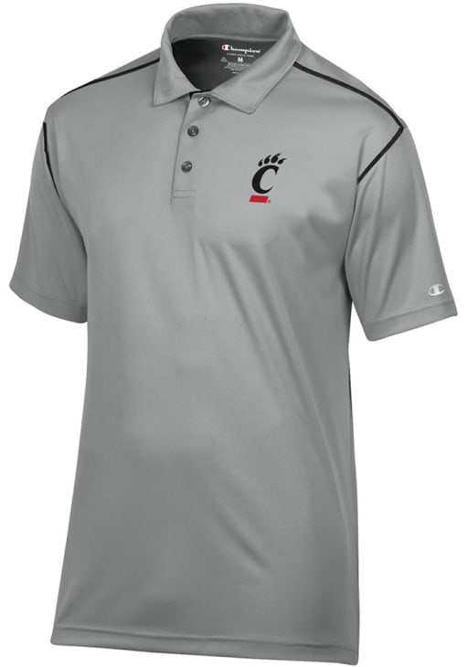 Enhance your professional style with this striking Mens Grey Short Sleeve Polo Shirt! Showcase your team pride among colleagues with this exceptional Cincinnati Grey Stadium Contrast Short Sleeve Polo. Stand out and make a statement in this Cincinnati Bearcats Short Sleeve Polo, featuring a team logo heat seal on front left chest that adds a touch of distinction to your look.