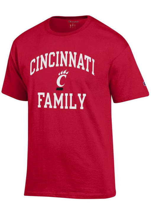 Display your team spirit with this remarkable Cincinnati Bearcats Champion Red ARCH LOGO FAMILY Short Sleeve T Shirt! The Cincinnati Short Sleeve Tee showcases a screen print with school name, family, and logo on center chest that truly sets it apart. Stand out from the crowd and proudly declare your allegiance to the Bearcats with this exceptional Red Cincinnati T Shirt. Go Bearcats!!