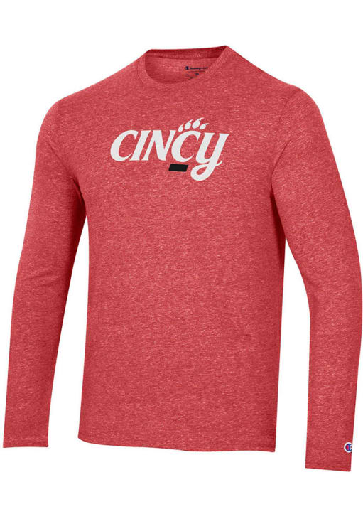Show your Cincinnati Bearcats spirit in this Cincinnati Red T Shirt! This Cincinnati Cincy Wordmark Long Sleeve T Shirt makes a great layer for cooler nights cheering on the Bearcats. Featuring a screen printed team graphic, this Cincinnati Bearcats Long Sleeve Tee is an essential addition for every fan. Go Bearcats!!