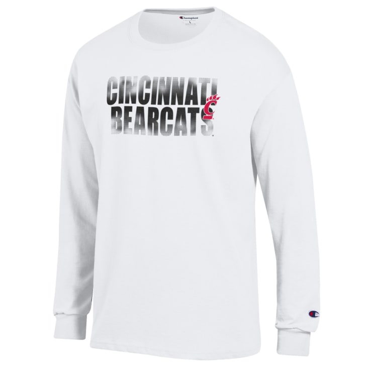 Show your Cincinnati Bearcats spirit in this Cincinnati White T Shirt! This Cincinnati Bright Lights Long Sleeve T Shirt makes a great layer for cooler nights cheering on the Bearcats. Featuring a screen printed Cincinnati Bearcats wordmark and logo, this Cincinnati Bearcats Long Sleeve Tee is an essential addition for every fan. Go Bearcats!!