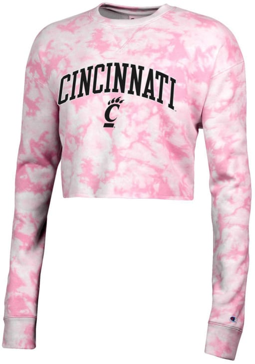 Gear up for the ultimate game day experience with this remarkable Cincinnati BearcatsWomens Pink Crush Dye Crop Crew Sweatshirt! Designed with the true fan in mind, this Bearcats Long Sleeve Sweatshirt features a center front screen print team name and logo. Stay warm and comfortable with this Womens Cincinnati Bearcats Crew Sweatshirt.