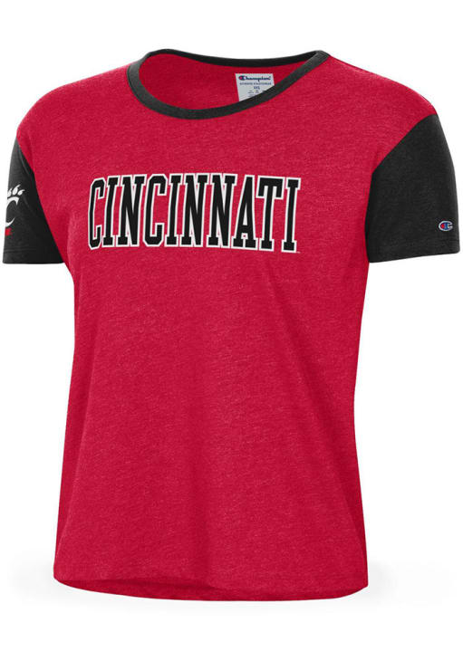 Display your team spirit with this remarkable Cincinnati Bearcats Red Boyfriend Crop Logo Short Sleeve T-Shirt! The Cincinnati Short Sleeve Tee showcases a screen print team name across center chest with screen print team logo on right sleeve that truly sets it apart. Stand out from the crowd and proudly declare your allegiance to the Bearcats with this exceptional Red Cincinnati T-Shirt. Go Bearcats!!