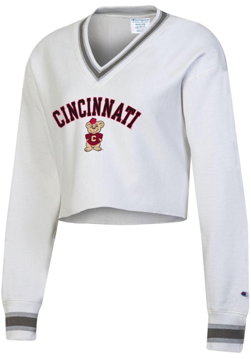 Gear up for the ultimate game day experience with this remarkable Cincinnati BearcatsWomens White RW Cropped Crew Sweatshirt! Designed with the true fan in mind, this Bearcats Long Sleeve Sweatshirt features a screen print team name and logo on center chest. Stay warm and comfortable with this Womens Cincinnati Bearcats Crew Sweatshirt.
