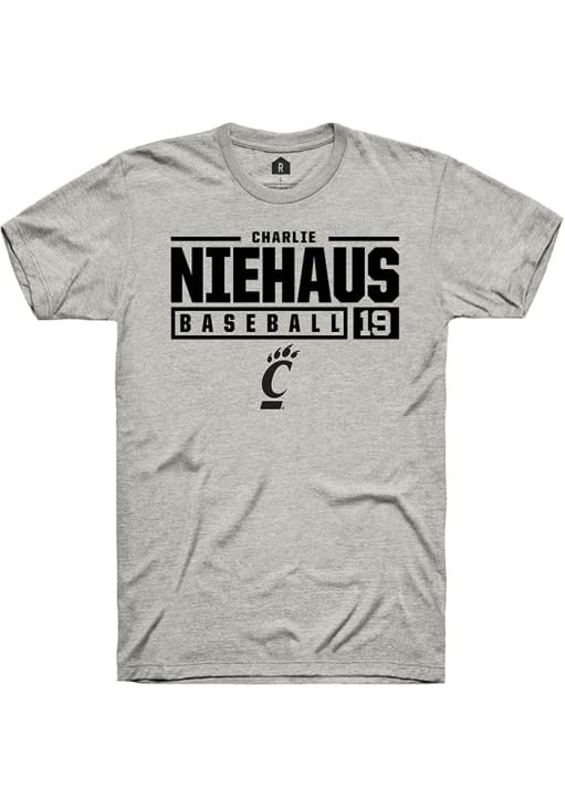 Charlie Niehaus Ash Cincinnati Bearcats NIL Stacked Box Short Sleeve T Shirt