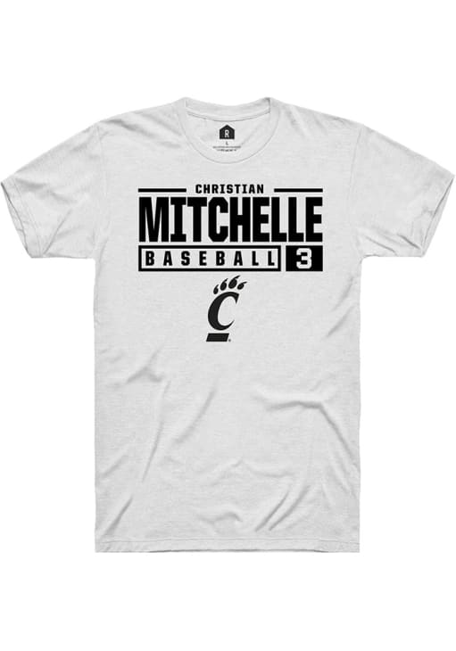 Christian Mitchelle White Cincinnati Bearcats NIL Stacked Box Short Sleeve T Shirt