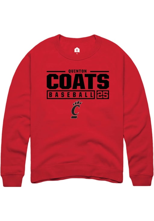 Quinton Coats Rally Mens Red Cincinnati Bearcats NIL Stacked Box Crew Sweatshirt