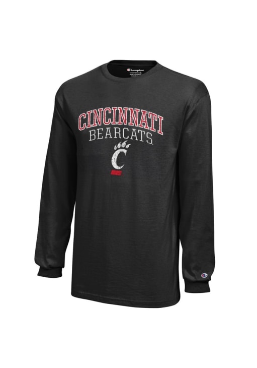 Show your Cincinnati Bearcats spirit in this Cincinnati Black T Shirt! This Cincinnati Distressed Long Sleeve T Shirt makes a great layer for cooler nights cheering on the Bearcats. Featuring a distressed screen printed arched 'Cincinnati Bearcats' wordmark and Cincy logo, this Cincinnati Bearcats Long Sleeve Tee is an essential addition for every fan. Go Bearcats!!
