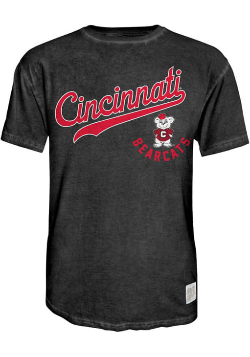 Support your Cincinnati Bearcats in this Black Short Sleeve Fashion Tee! This Vintage Script Tail Fashion T Shirt features a vintage screenprint of team graphic on front chest. Be ready to yell "Go Bearcats!" when you wear this Cincinnati Short Sleeve Fashion T Shirt in your favorite stadium or on the street.