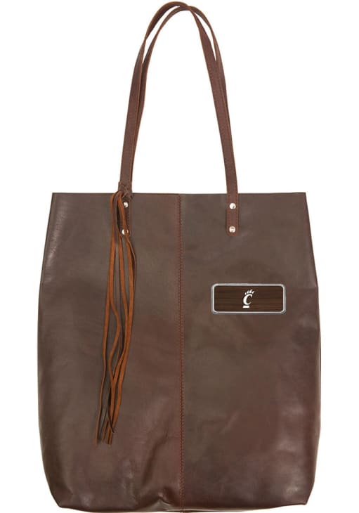 Product Details Product Details Cowhide LeatherLarge deep main compartment14" long removable fringeTwo 23" easy carry handlesPerfect for travel or overnight bag Officially Licensed Express your Bearcats loyalty on the go with this Tote Bag from Rally House! You'll love this Tote that features a soft but sturdy design crafted with full grain pull-up cowhide leather.