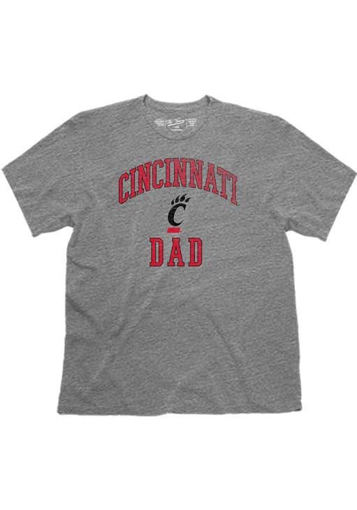 Support your Cincinnati Bearcats in this Grey Short Sleeve Fashion Tee! This Dad Fashion T Shirt features a screen print of school name with "Dad" and team logo across chest. Be ready to yell "Go Bearcats!" when you wear this Cincinnati Short Sleeve Fashion T Shirt in your favorite stadium or on the street.