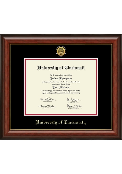Cincinnati Bearcats Lancaster Diploma Frame is a great way to keep your Bearcats memories close. You'll love looking at your favorite Bearcats moments with this Diploma Frame, which features a showcase for your University of Cincinnati diploma in a USA-made frame. Overall Size 17.625" x 15.125". Go Bearcats!!