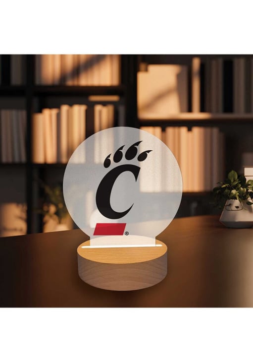 Product Details Product Details Powered by 3 AAA Batteries (Not Included)Comes with Base and Removable Acrylic InsertMeasures approximately 5x4x6 inchesAdd ambiance and team spirit to any space!Made in the USA Officially Licensed This Cincinnati Bearcats Logo Light Desk Accessory is a great way to show your Bearcats pride at work. This Desk Accessory features a wood base with acrylic insert.