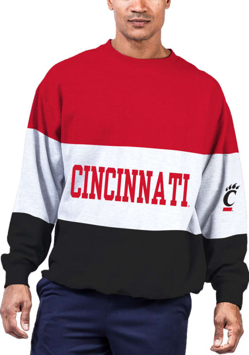 Head out in style with our Cincinnati Bearcats Red Color Blocked Crew Sweatshirt! This Bearcats Big and Tall Sweatshirt features a screen prnt team name on front chest with team logo on left sleeve. Whether you are going out on the town or heading to the big game, you will always be warm and dressed in style with this Cincinnati Bearcats Crew Sweatshirt.