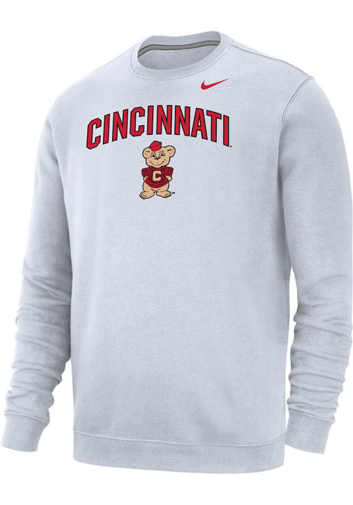 Gear up for the ultimate game day experience with this remarkable Cincinnati BearcatsMens White Club Fleece Vault Arch Mascot Crew Sweatshirt! Designed with the true fan in mind, this Bearcats Long Sleeve Crew Sweatshirt features a screen print of team graphic on front chest. Stay warm and comfortable with this Mens Cincinnati Bearcats Crew Sweatshirt.