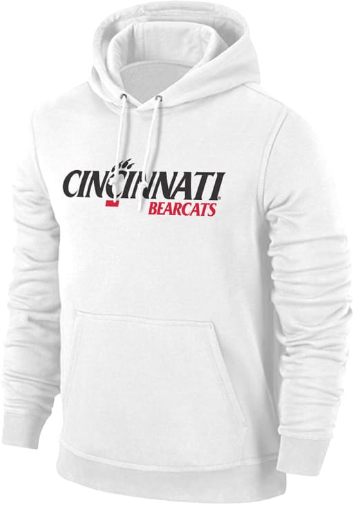 Embrace your Bearcats pride and showcase your team spirit with confidence in this Cincinnati Bearcats Long Sleeve Hoodie! Stay warm and stylish with the Cincinnati Mens White Team Wordmark Hooded Sweatshirt. Designed with screen print of Cincinatti Bearcats wordmark on front chest, this Bearcats Long Sleeve Hoodie is a must-have for dedicated fans.
