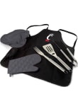 Product Details Product Details Folds into easy-to-carry toteAdjustable shoulder strapTote folds out in to apron with team logoDeluxe BBQ set stored in side3 stainless steel BBQ toolsComes with chef's hatPerfect for barbecues, picnics, and campingPolyester ToteImported Officially Licensed Cincinnati Bearcats Apron Set will show your {Mascot Alia} pride. This Apron Set features a team logo and will look great at any tailgate. Go Bearcats!!