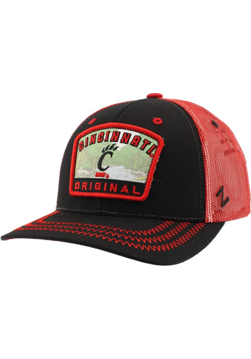 Product Details Product Details Zephyr Rabble Rouser Meshback HatFront patch logoMatching crown and visorContrast MeshbackSide Z logoCotton/Poly BlendCurved BillLow CrownStructuredWipe clean with cloth or cleaning kitImported Officially Licensed This Black Bearcats Adjustable Hat features a front patch with embroidered design.