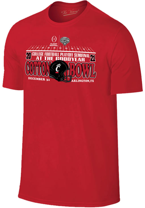Display your team spirit with this remarkable Cincinnati Bearcats Red 2021 College Football Playoff Bound Short Sleeve T Shirt! The Cincinnati Short Sleeve Tee showcases a screen print Cincinnati Bearcats Football 2021-2022 College Football Playoff bound graphic on front chest that truly sets it apart. Stand out from the crowd and proudly declare your allegiance to the Bearcats with this exceptional Red Cincinnati T Shirt. Go Bearcats!!