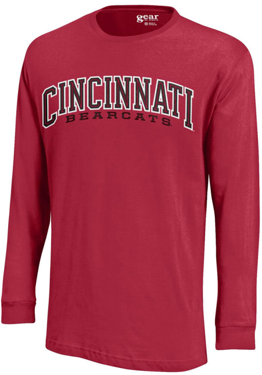 Show your Cincinnati Bearcats spirit in this Cincinnati Red T Shirt! This Cincinnati Arch Wordmark Long Sleeve T Shirt makes a great layer for cooler nights cheering on the Bearcats. Featuring a screen printed wordmark "Cincinnati Bearcats", this Cincinnati Bearcats Long Sleeve Tee is an essential addition for every fan. Go Bearcats!!