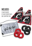 - Includes two game boards, 6 team-colored bags, and a bag for easy carrying.