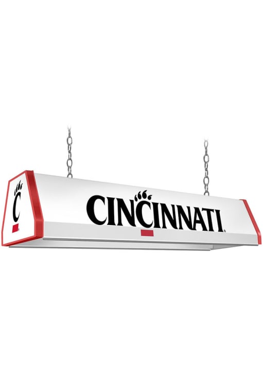 Product Details Product Details Dimensions: 38.5"L x 10.75"W x 8"DHigh-Resolution, Digitally Printed SurfaceChains, Hanging Hardware, and Bulb IncludedUses a 50 Watt, Linear Fluorescent BulbPerfect for any fan cave or billiard room!PLASTICUSA Officially Licensed These Cincinnati Bearcats Pool Table will add Bearcats pride to your fan cave. This Pool Table features a high resolution image with a high gloss finish and metallic trim. Go Bearcats!!